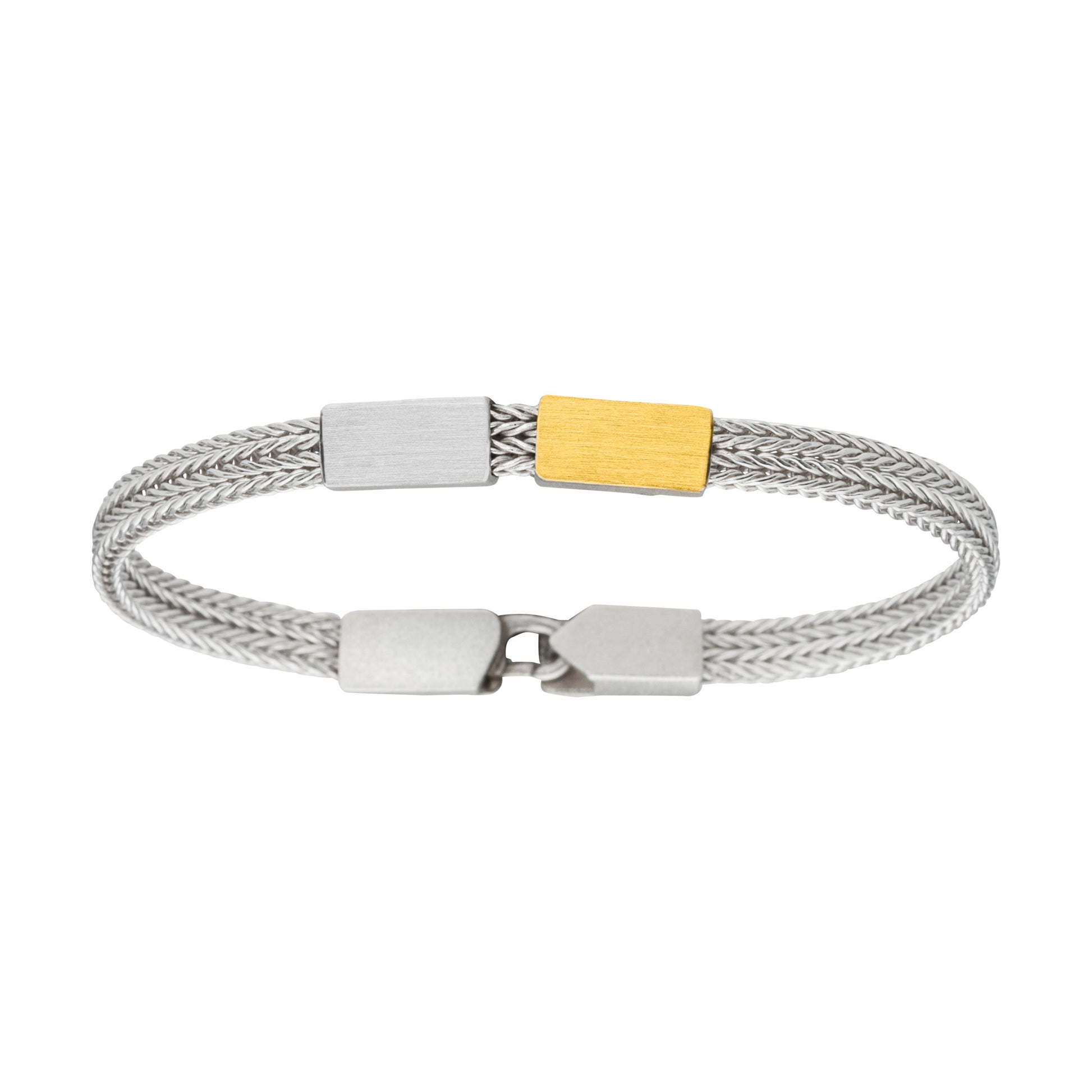 Silver bracelet with laminated 22ct gold adorning a silver fox chain