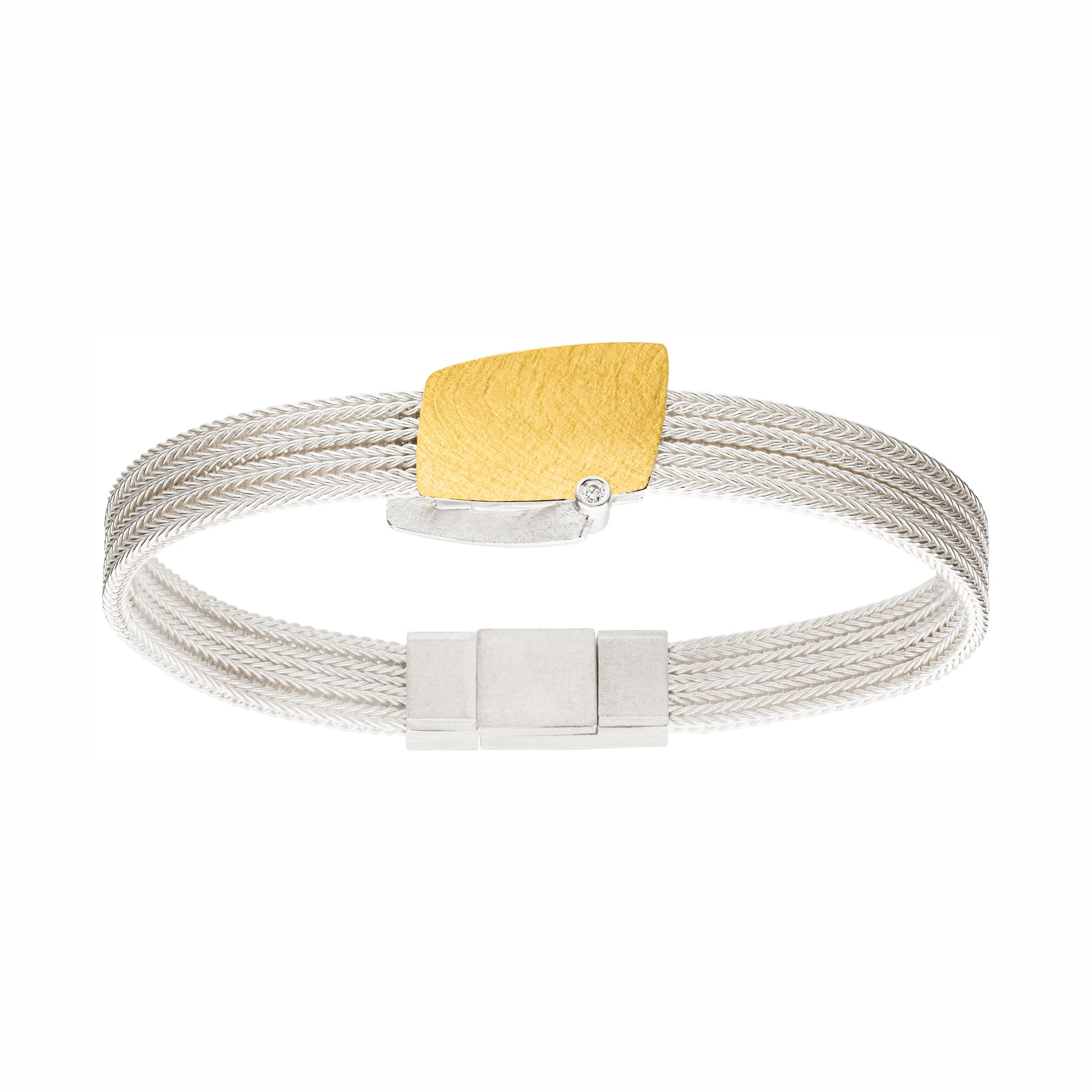 Silver bracelet with laminated 22ct gold with a 3pt diamond adorning a silver fox chain