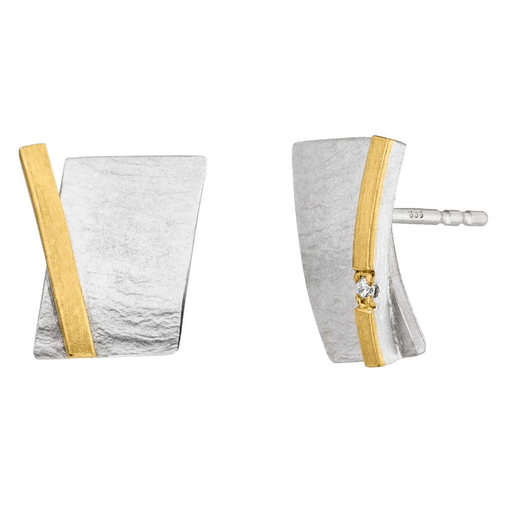 O982 - Silver, Gold & Diamond Rectangle Studs