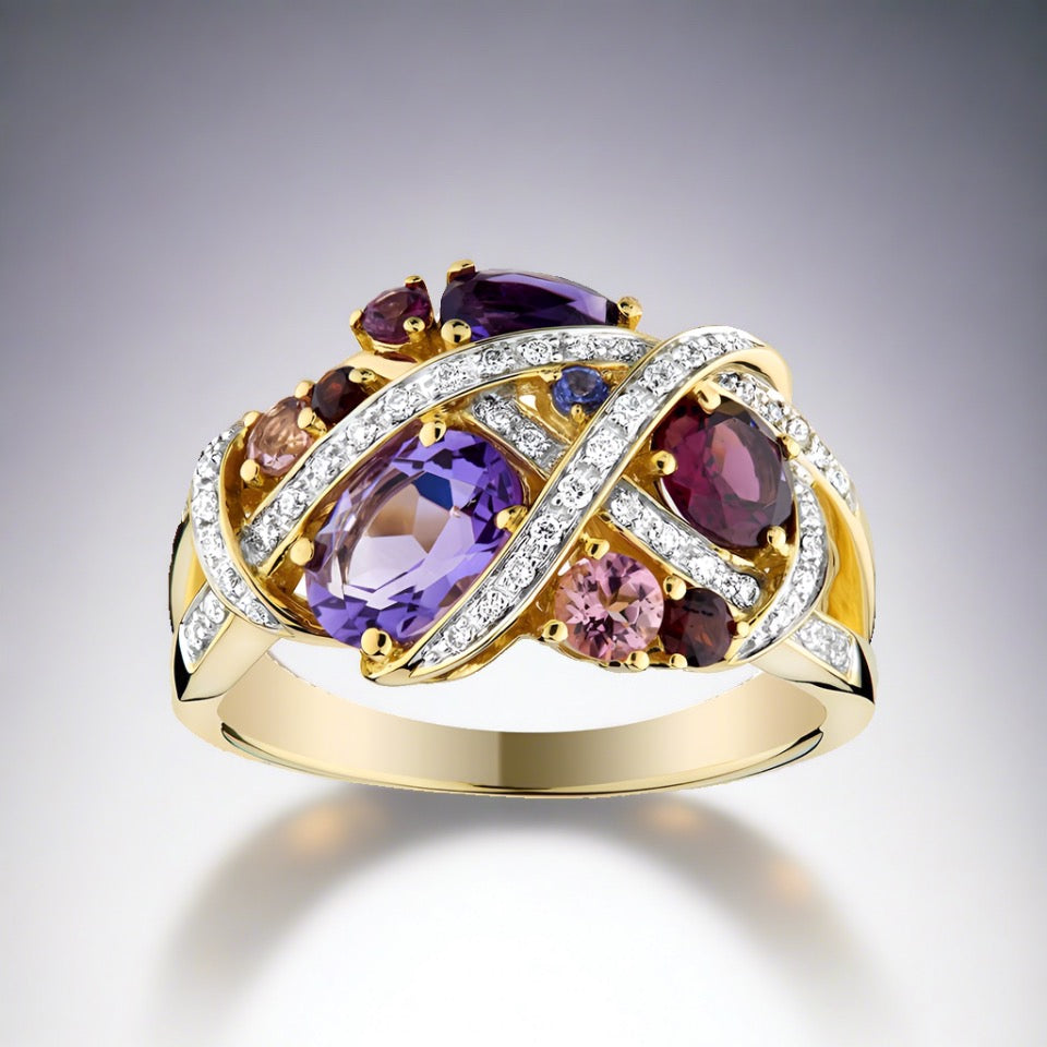 Amethyst, Pink Tourmaline, Garnet & Tanzanite Ring