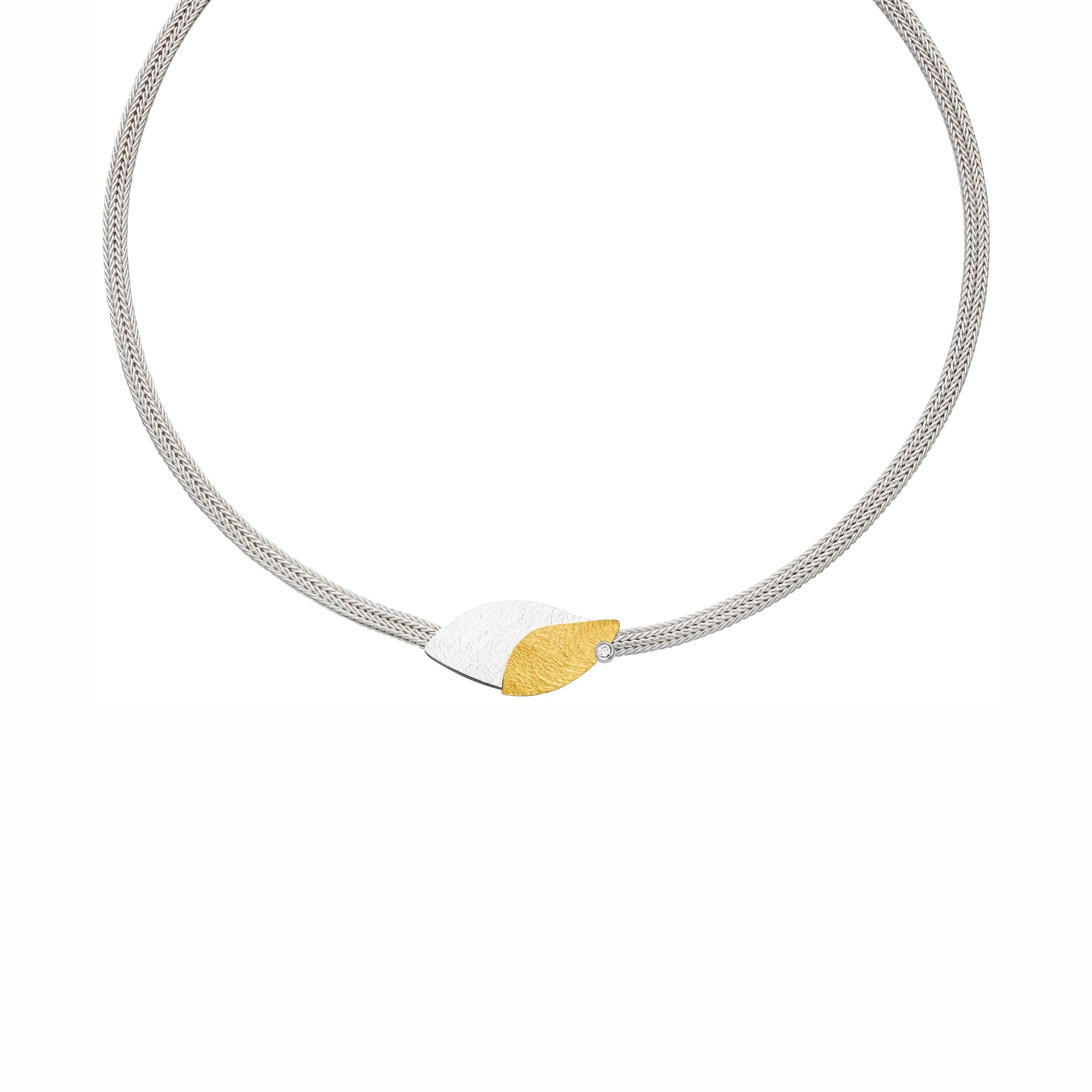 Silver pendant with laminated 22ct gold and a 3pt diamond adorning an 18" chain