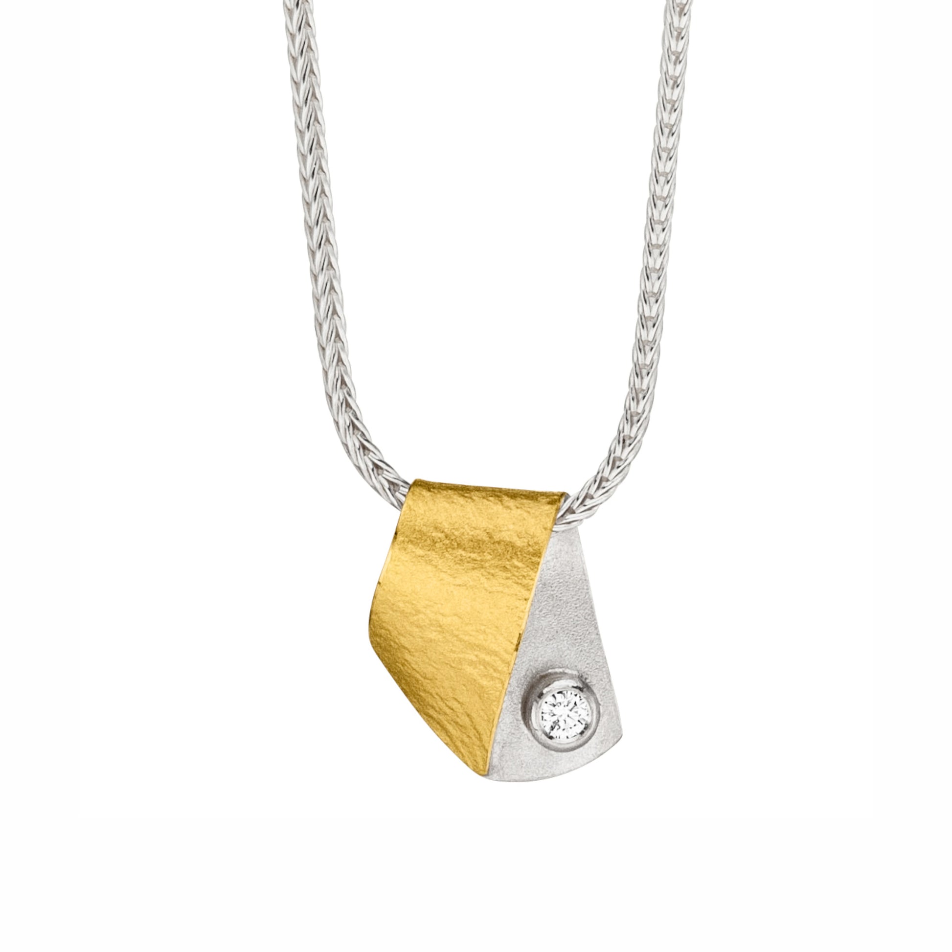 Silver pendant with laminated 22ct gold and a 3pt diamond adorning an 18" fox chain