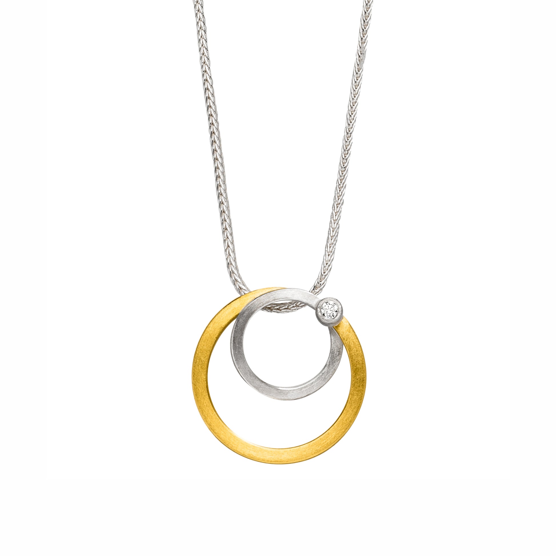 K1443 - Silver, Gold and Diamond Circle Pendant