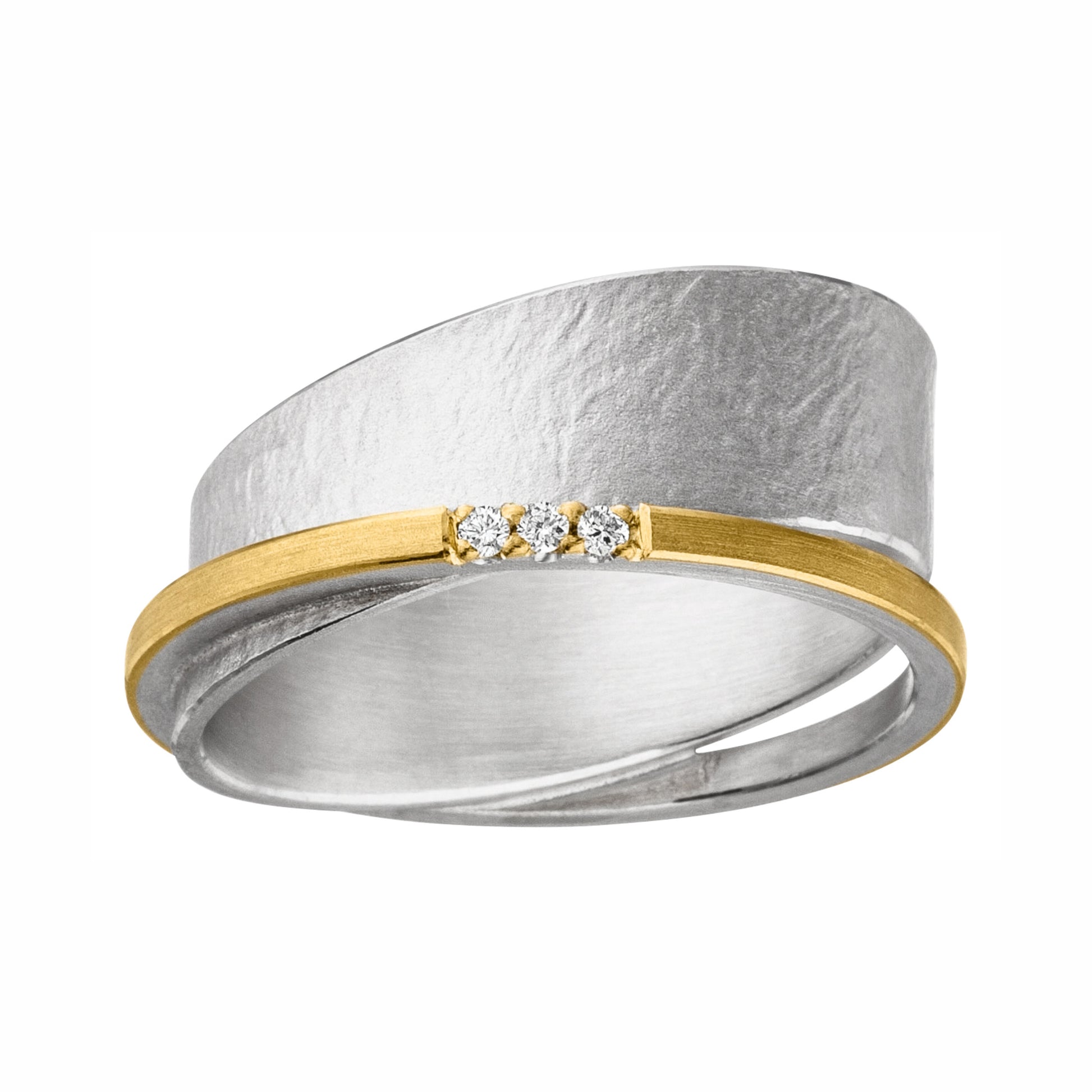 Silver and laminated gold ring with 3 1.2pt diamonds