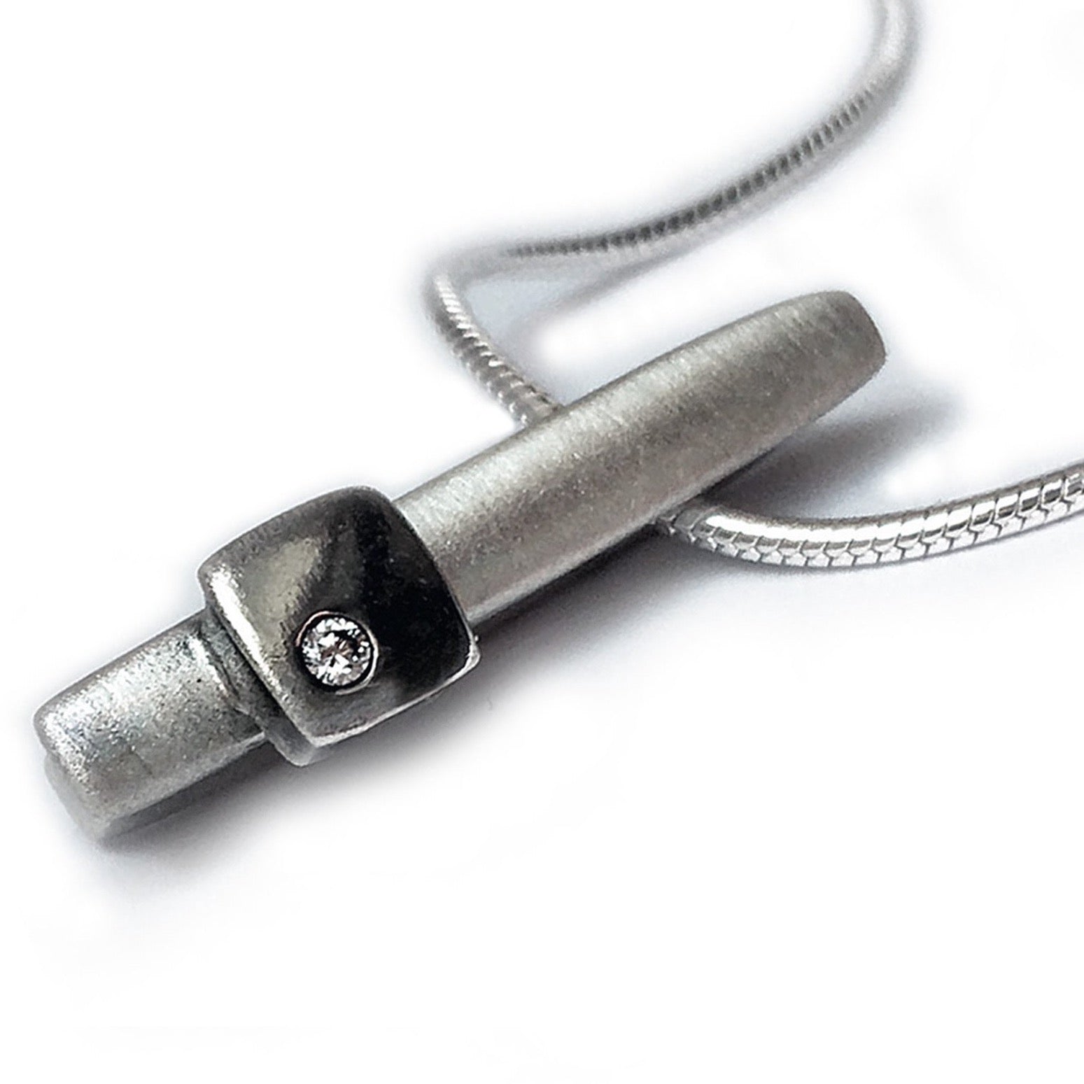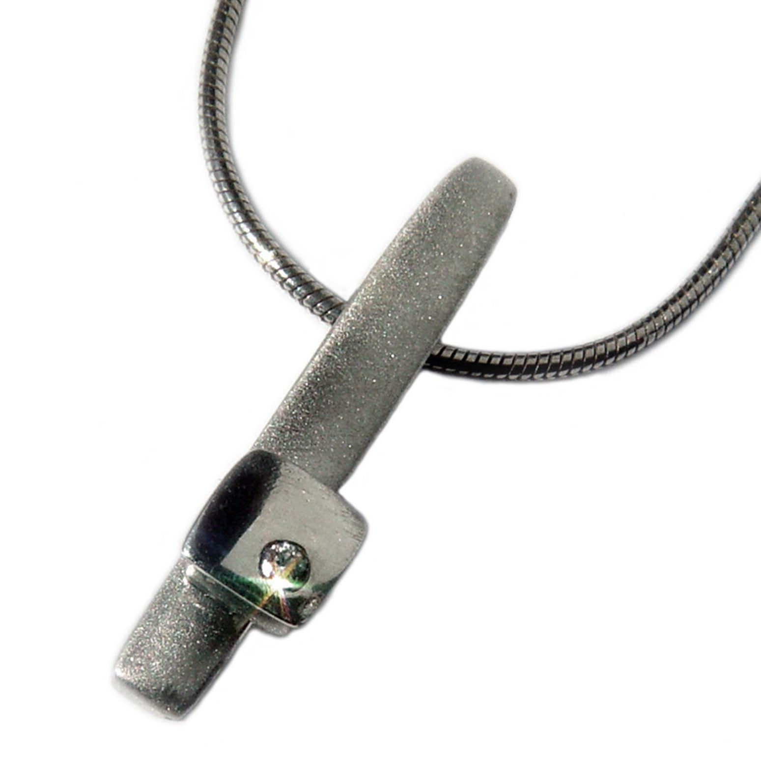 Sterling Silver pendant set with a diamond on a snake chain