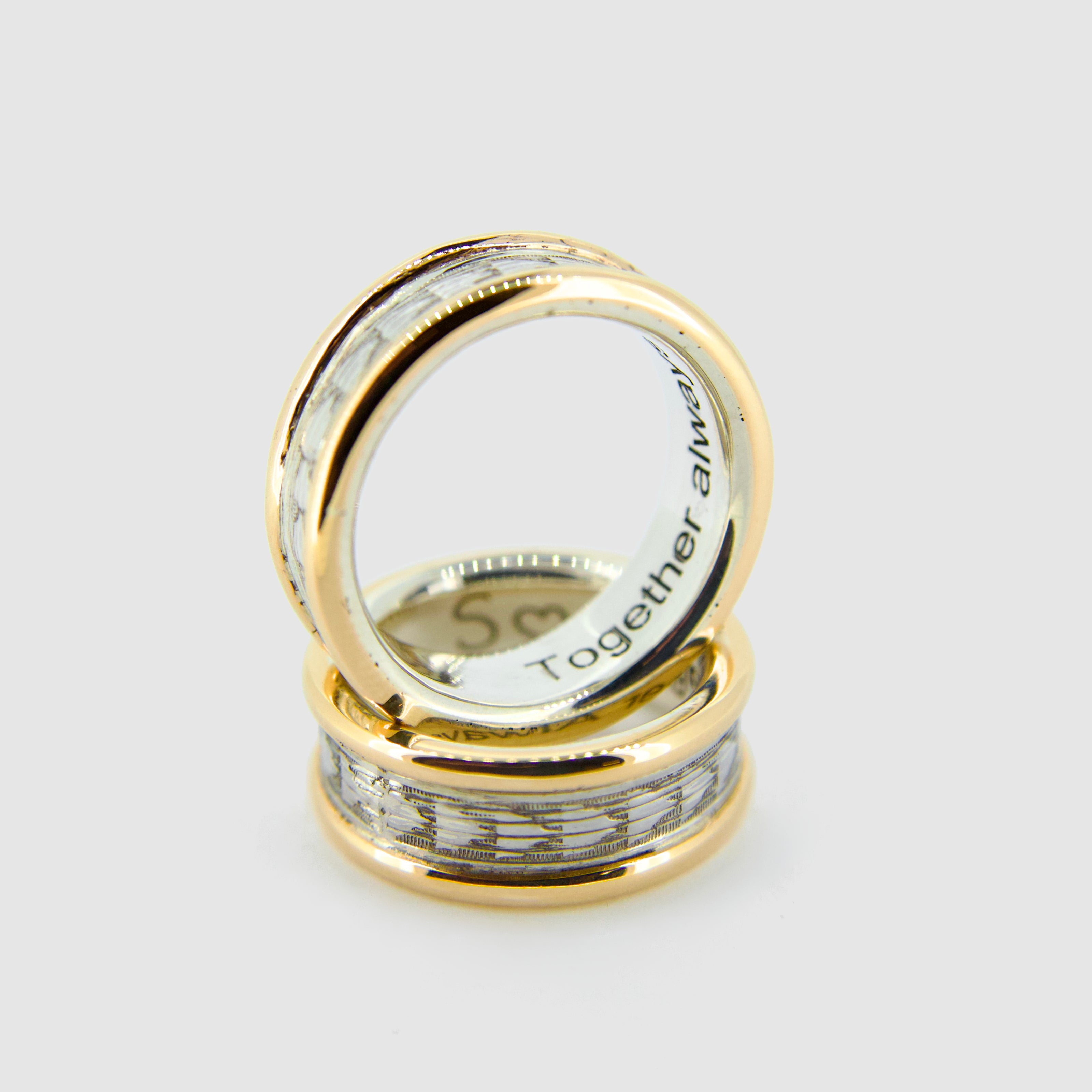Previously 2 different bracelets, combined into a pair of rings for a mother and daughter with their initials engraved on the inside.