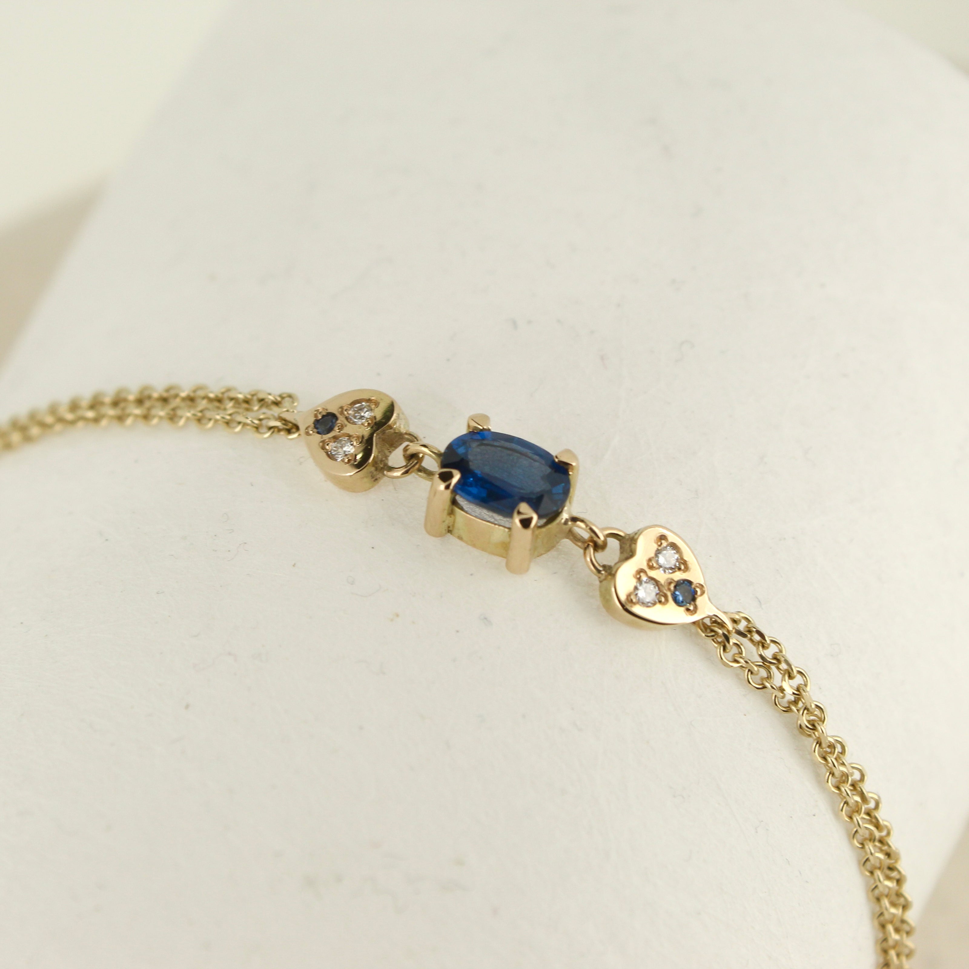 A bespoke bracelet for a brides 'something blue' 18ct and 9ct yellow gold, new sapphires and old diamonds.