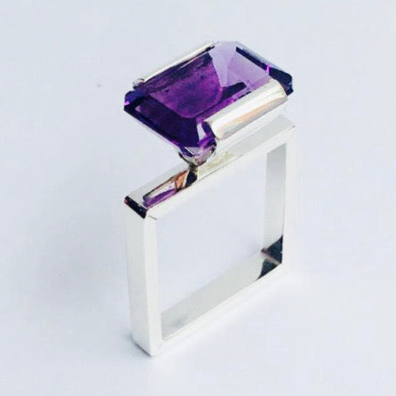 A contemporary, amethyst, sterling silver, square ring designed & hand crafted by Lynn.
