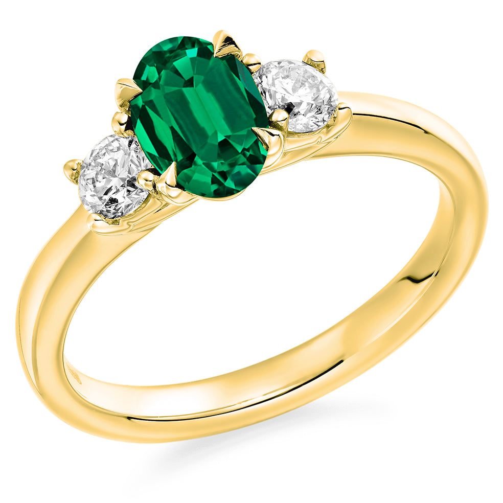 18ct Yellow Gold Emerald and Diamond Trilogy