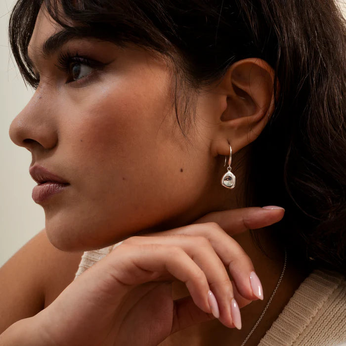 'Handcrafted from sterling silver, these organically-inspired pebble earrings have a subtle dimple and dangle from our signature earwires. Our Pebble collection combines natural forms with modern design to bring understated elegance to any look.