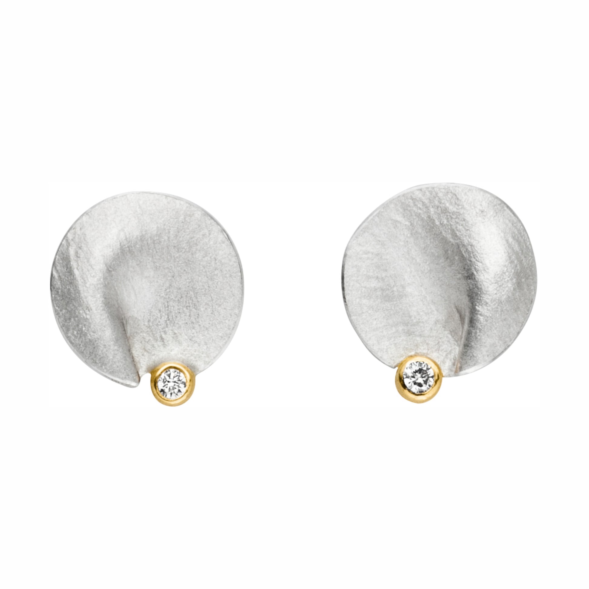 Silver and textured laminated 22ct gold with 3pt diamonds in each earring