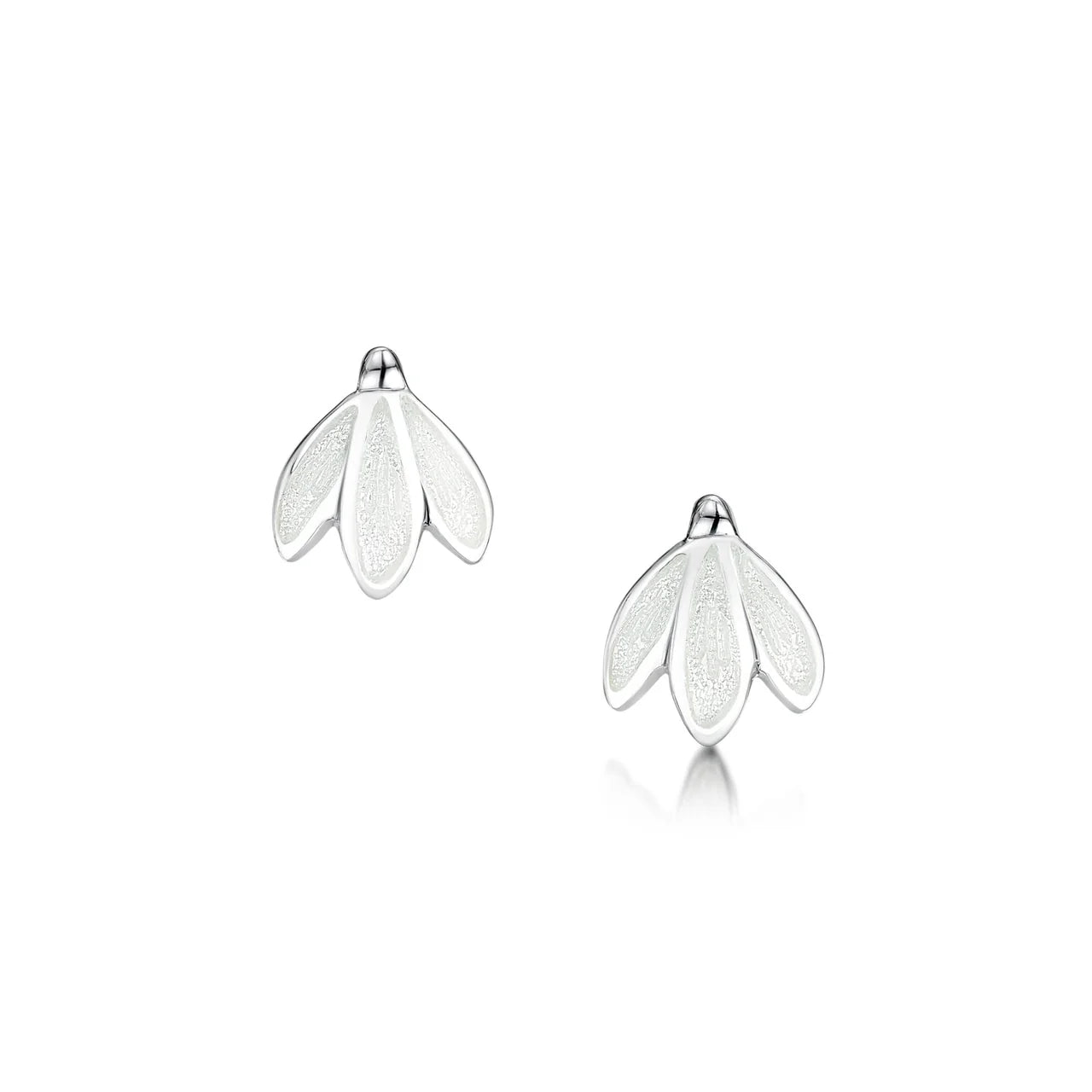 These sterling silver Snowdrop Stud Earrings feature a single flowering snowdrop, hand-enamelled at our workshop in Orkney. The earrings are hand-enamelled in 'Crystal' enamel in Sheila Fleet's Orkney workshop.