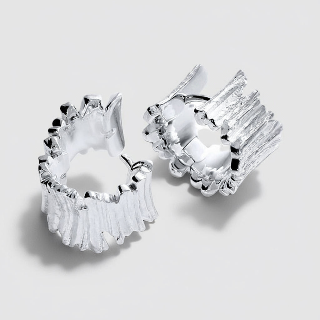 Sterling silver creole hoops with a distinctive wood texture finish. Versatile and refined, these 925 silver earrings add subtle character to any look.
